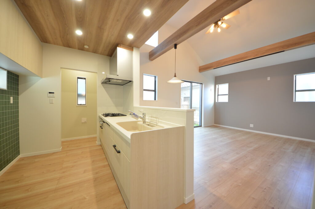 鎌ケ谷市北中沢2丁目に、ロフト付きの平屋モデルハウスがOPENです! 全体をミッドセンチュリーなインテリアでまとめた、21.28坪 2~3人向けの平屋です。 間取りは2LDK+ロフト。パントリー、WICなど収納も充実しております。 階段付きのロフトは、趣味やお仕事、お子様の秘密基地やシアタールームなど、使い方を想像するだけでわくわく・うきうき。 16.5帖のLDKは、勾配天井を採用することで実際の帖数より広く感じられます。 また、キッチン横にパントリー、反対側には洗面・バスルームがあり、家事導線も抜群ですよ。 平屋での生活、ぜひ1度体感してみてください。