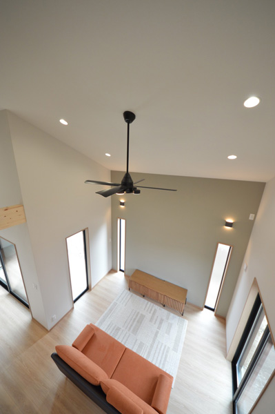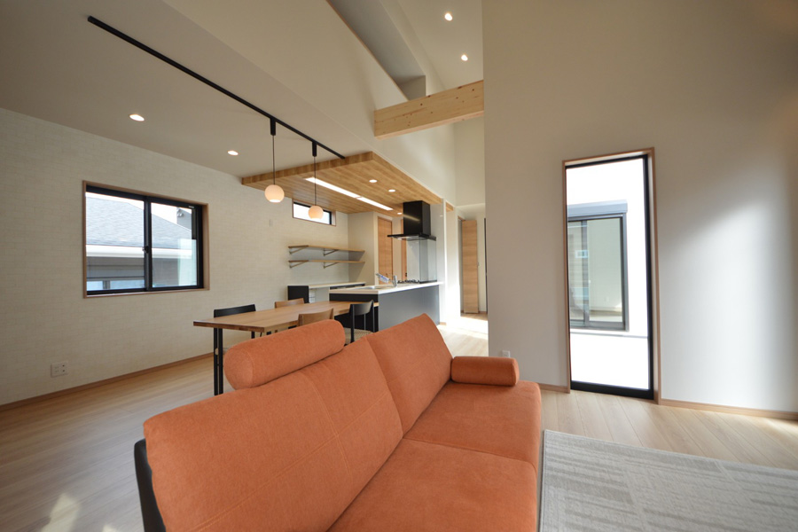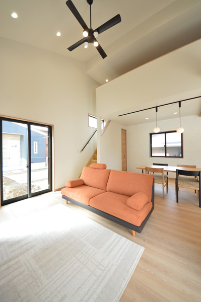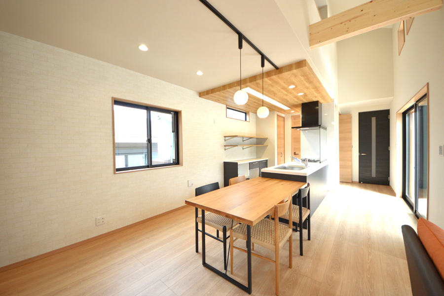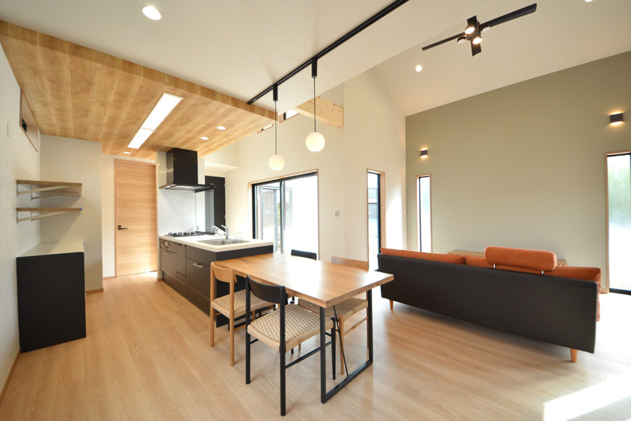 25.29坪 2~3人向けの平屋です。インテリアテイストは今流行りのジャパンディ。落ち着いたアースカラーにブラックのアクセントを入れて。